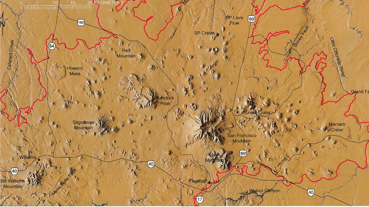 Voici Sunset Crater qui doit son nom à la couleur orangée de son sommet. Ce volcan est le plus jeune du secteur, sa dernière éruption date de 1080. Il fait partie du San Francisco Volcanic Field qui regroupe près de 600 cratères.